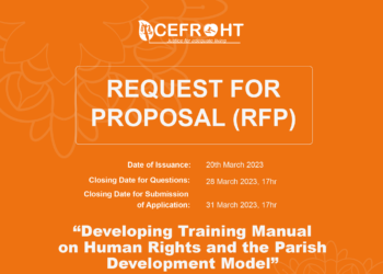Date of Issuance: 20th March 2023 Closing Date for Questions: 28 March 2023, 17hr Closing Date for Submission of Application: 31 March 2023, 17hr Subject: Request for Proposal No.1 2023 – 01 Entitled “Development of Training Manual on Human Rights and the Parish Development Model” Dear Sir/ Madam, You are kindly invited to submit a technical